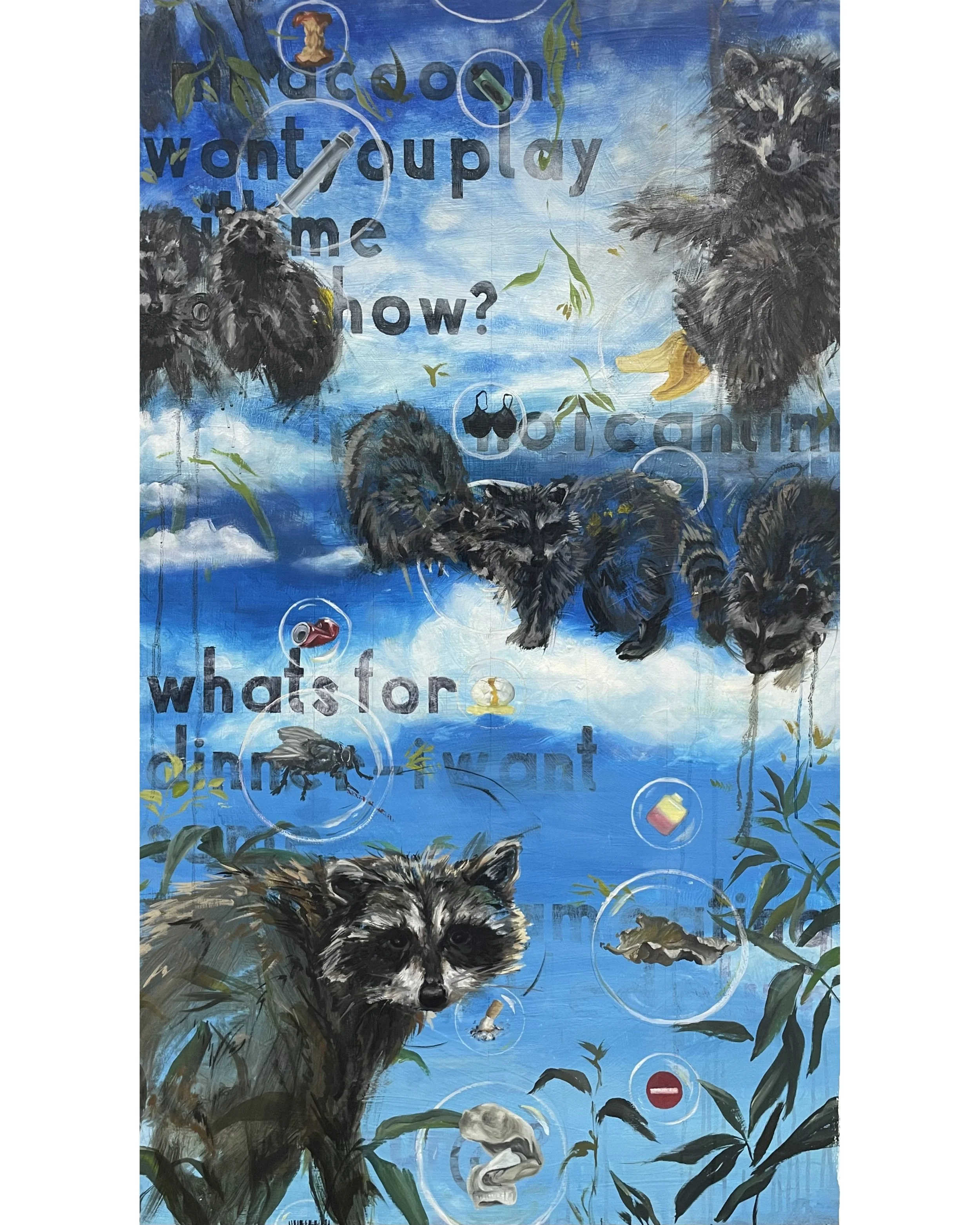 90cm x 150cm, oil, acrylic and pen on canvas, 2025